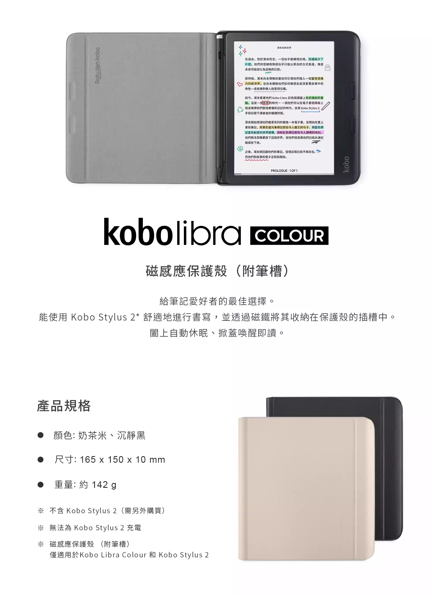 Kobo Libra Colour 7 吋磁感應保護殼(附筆槽)奶茶米